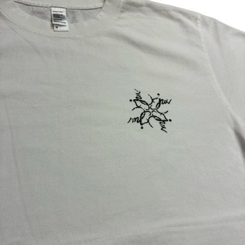 クリーンなホワイトボディに、胸元のスプリンクラー風ロゴが映えるヴィンテージライクなTシャツ。「Jun」筆記体ロゴを取り入れたワンポイントデザインが、シンプルながら程よい存在感を演出します。どんなスタイルにも合わせやすく、地方学生の日常にも自然に馴染む一枚です。