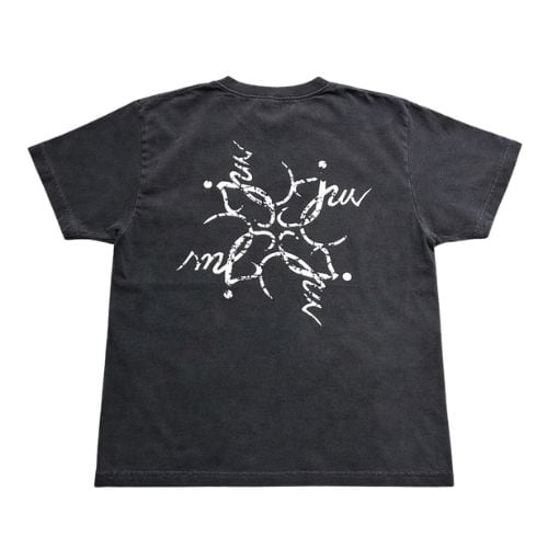 フェード感のあるチャコールグレーが魅力の、ヴィンテージライクなTシャツ。フロントは「Jun」筆記体を組み合わせたワンポイントロゴでミニマルに仕上げ、バックには同デザインを大きく配置したインパクトのある仕様。シンプルな前面と存在感のある背面のバランスが、1枚でもコーデの主役になるデザインです。