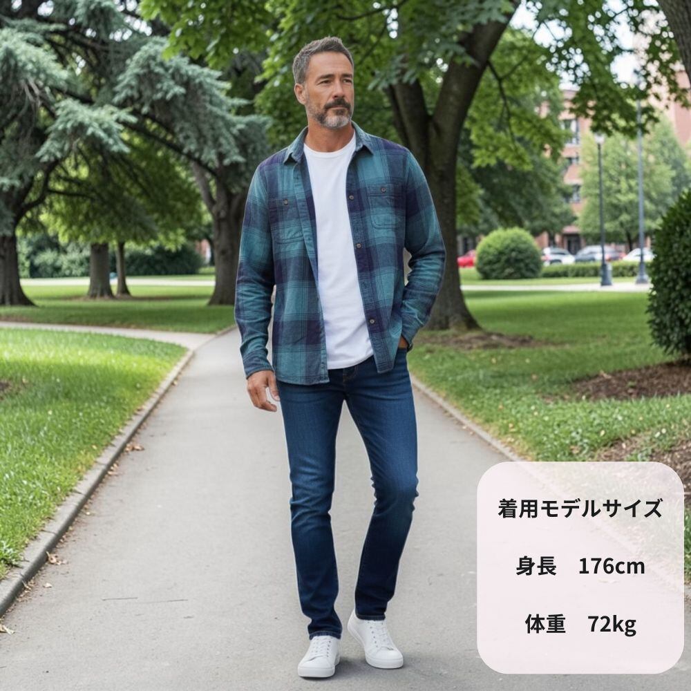 落ち着いたブルー×ネイビーの配色が魅力の、チェック柄フランネルシャツ。